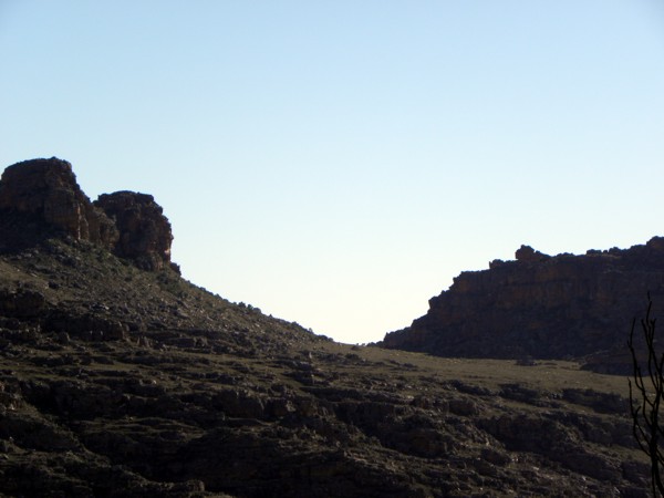 Grootsteil se Kop : “big steep-place’s hill” [Afr]; from the Agter-Pakhuis side they call it Oompie se Kop; from the Heuningvlei side, Grootsteil se Kop. Either way it’s the same 1180m peak